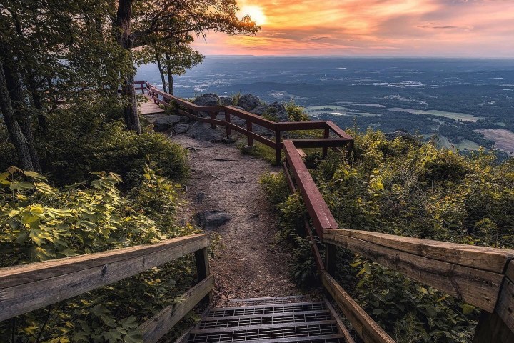 As you leave the suburbs behind, traverse winding mountain roads, embracing the thrill of the ascent towards Fort Mountain State Park.